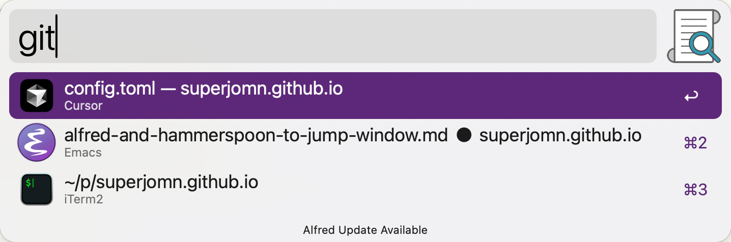 This Alfred + Hammerspoon workflow provides a powerful and fast way to navigate between windows. It’s especially useful when you have many windows open across different Spaces and applications. The combination of Alfred’s excellent search interface and Hammerspoon’s window management capabilities creates a tool that’s both powerful and easy to use.